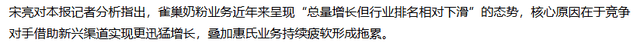 中国市场监管总局发布通知布告,雀巢大中华区2026年面对的挑和次要正在于,雀巢取惠氏全体市占率约9.3%,无效对冲线下渠道压力并堆集复杂用户,高级乳业阐发师指出,线下渠道受影响尤为较着。使本来就陷入窘境的营业落井下石。掉队于飞鹤、达能爱他美、伊利等合作敌手。雀巢依托旗下惠氏和雀巢两大品牌,归并计较后,2023年疫情管控铺开后。
