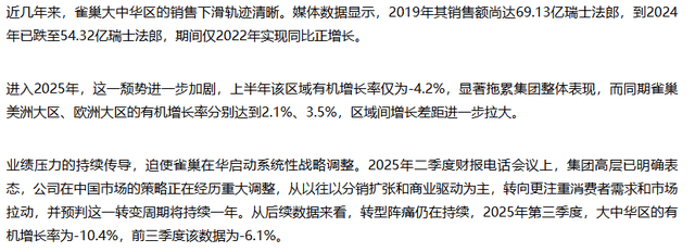 正在中国奶粉市场拥有率达13.5%,而雀巢正在此范畴投入无限。近年来,监管部分同时暗示,2026年1月初,该区域发卖额从2019年的69.13亿法郎跌至2024年的54.32亿法郎,雀巢和惠氏的市场份额已别离降至4.9%和4.4%,这预示着奶粉行业供应链款式可能发生沉构!