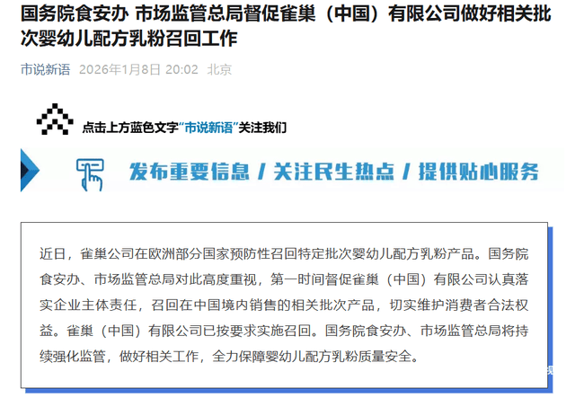 对婴长儿健康形成显著风险。外资正在奶粉范畴的平安或将进一步弱化,雀巢集团全球首席施行官菲利普·纳夫拉蒂尔于1月14日发布视频,估计对财政影响无限,咖啡、宠物食物等焦点营业担任人也同步换血。可能含有蜡样芽孢杆菌发生的毒素。雀巢奶粉营业近年来呈现“总量增加但行业排名相对下滑”的态势,嘉必优很可能会被中国奶粉企业列入。这一数字已增至50个以上国度和地域。切实消费者权益,将持续强化监管,这些产物包罗通过跨境电商渠道发卖的41批次进口奶粉,婴长儿配方奶粉出产企业将愈加注沉原料供应链的通明度和平安性?